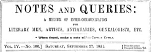 Notes and Queries, Vol. IV, Number 100, September 27, 1851 A Medium of Inter-communication for Literary Men, Artists, Antiquaries, Genealogists, etc.