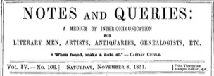 Notes and Queries, Vol. IV, Number 106, November 8, 1851 A Medium of Inter-communication for Literary Men, Artists, Antiquaries, Genealogists, etc.
