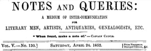 Notes and Queries, Vol. V, Number 130, April 24, 1852 A Medium of Inter-communication for Literary Men, Artists, Antiquaries, Genealogists, etc.