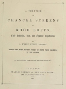A Treatise on Chancel Screens and Rood Lofts Their Antiquity, Use, and Symbolic Signification
